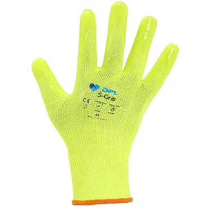 DESCRIZIONE: Guanto anatomico riusabile in supporto di HPPE composito High visibilty monofilo lavorato a maglia senza cuciture, con forma “stretch to fit” e rivestimento sintetico in gomma ...